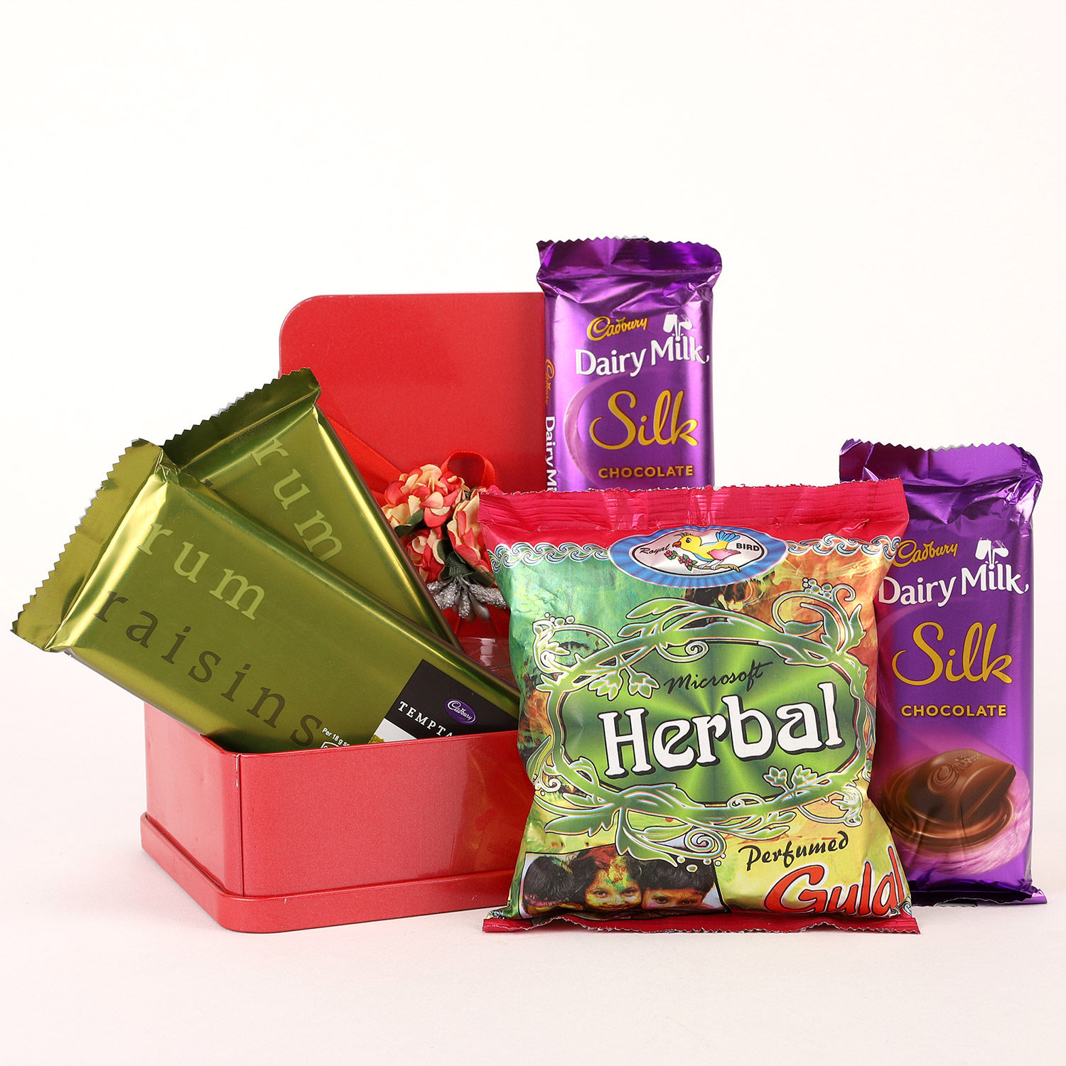 Buy Send Box Of Herbal Gulal Cadbury Chocolates Online Ferns N Petals